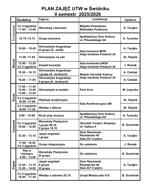 Zarząd UTW zaprasza na wykład audytoryjny dr Janusza Kłapcia „Kryzys paliwowy lat 80-tych i jego późniejsze następstwa”, który odbędzie się w dniu 15.04.2026 o godz. 16.00 w sali plenarnej Urzędu Miasta
