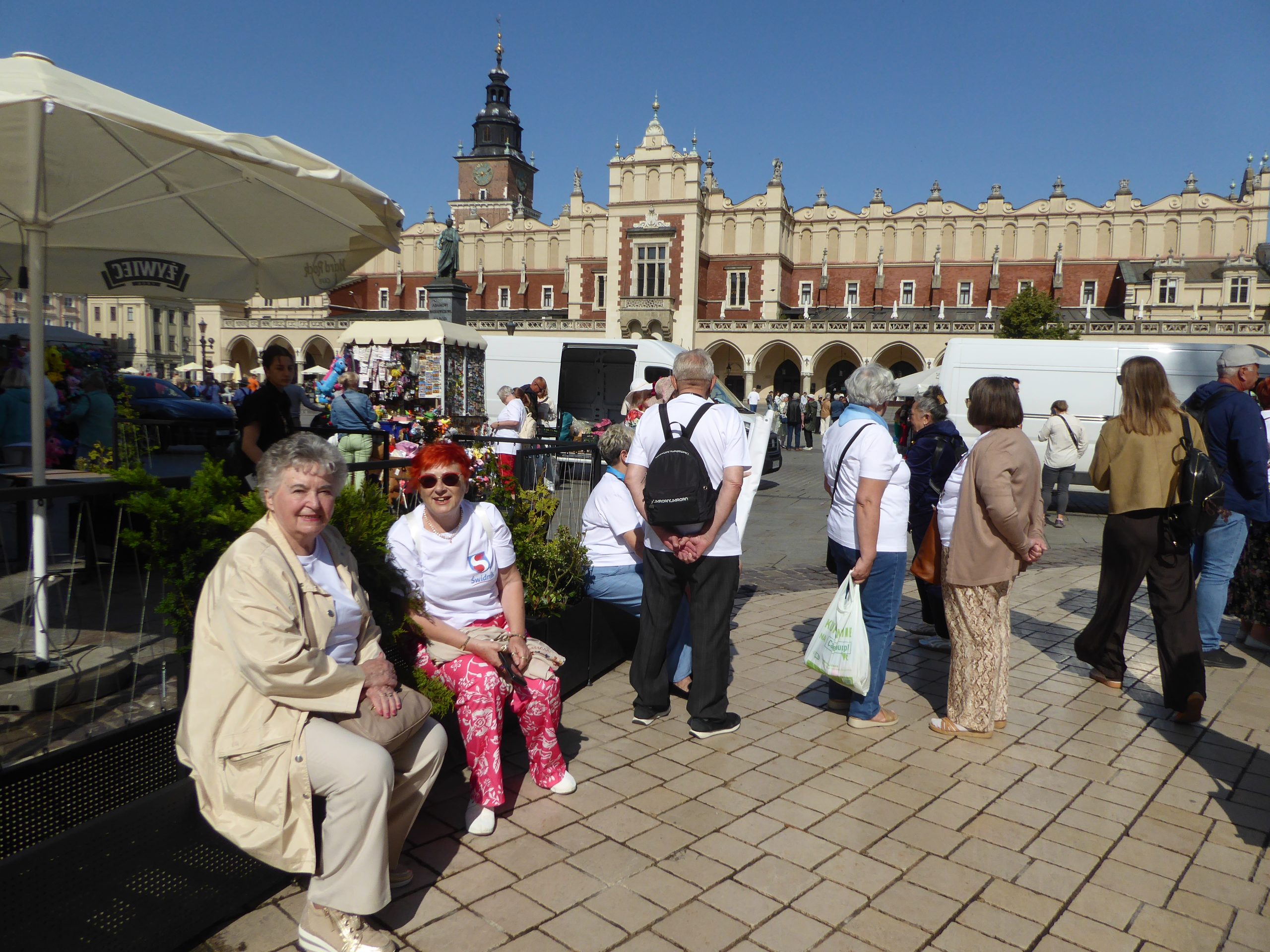Nasza grupa na tle Sukiennic i Wieszcza Adama
